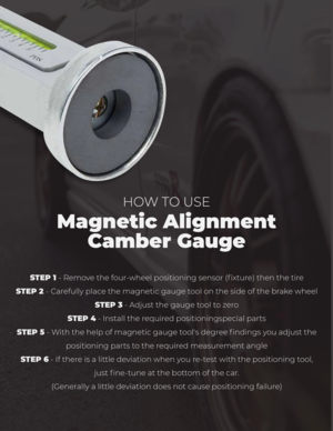 Our Magnetic Wheel Alignment Gauge allows you to easily measure the camber and caster angle on the wheel hub or brake disc, so you can adjust to maintain correct wheel aligment and even tire wear!