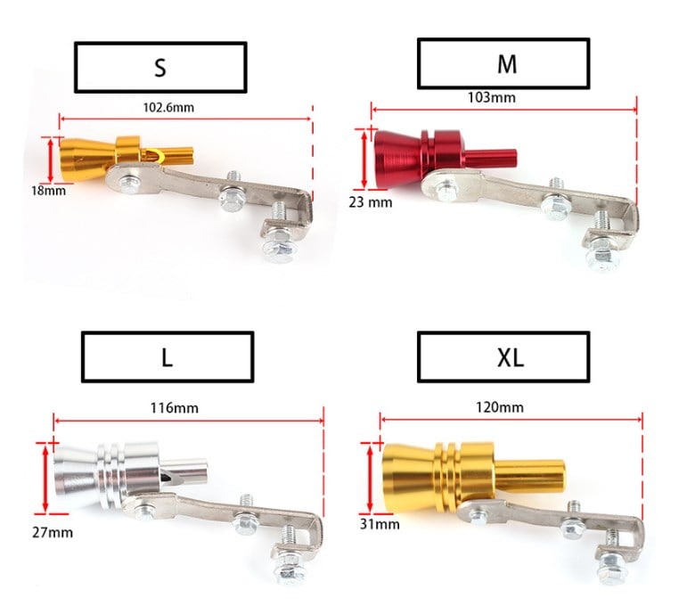 The pipe whistle can make the pressure blowing out of your car sound loudly.The special sound and the bright colors(red/blue/black/gold/silver) turn your car into a fashionable and king of the road.