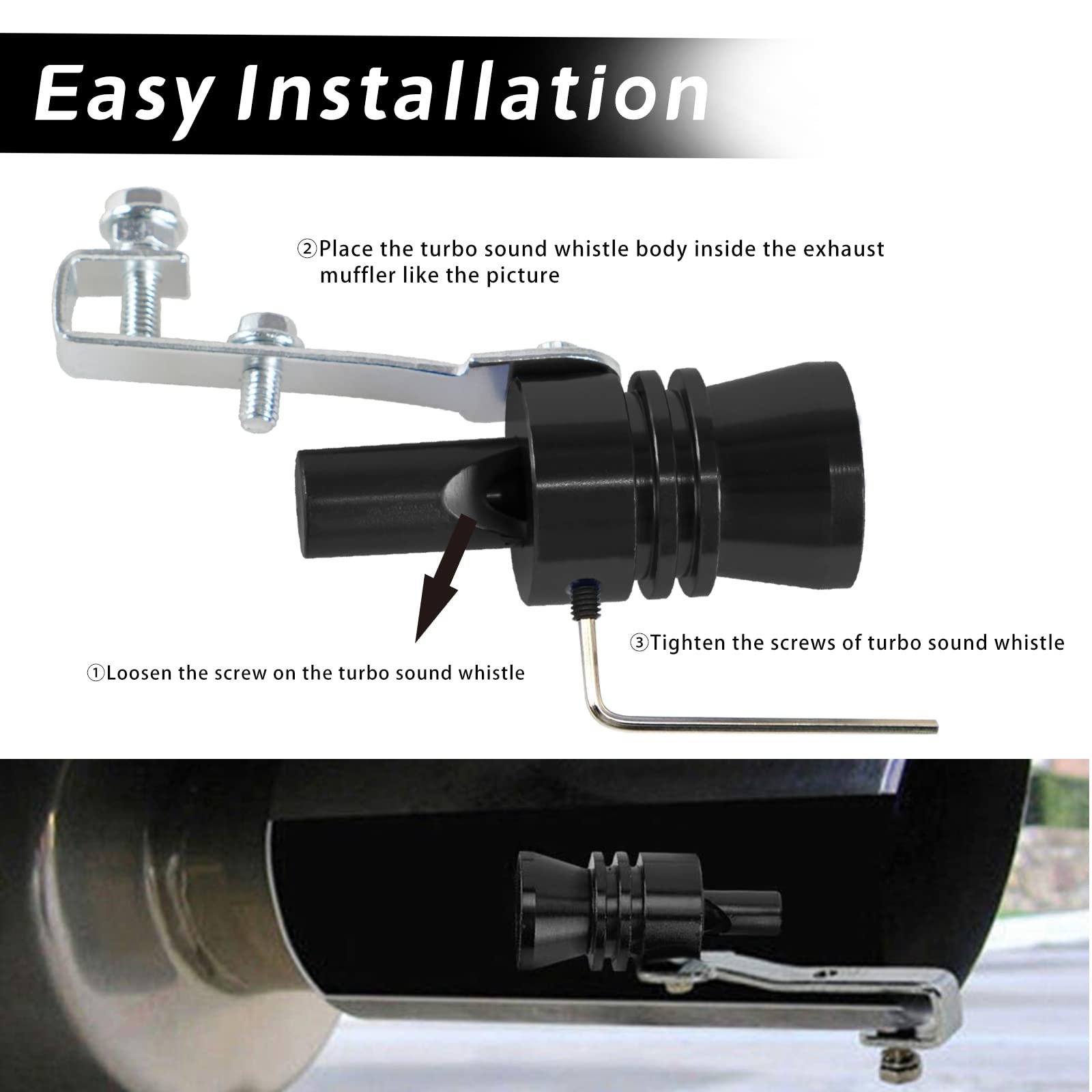 The easy installation just mount in the tailpipe and tighten the screws.